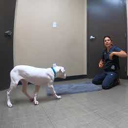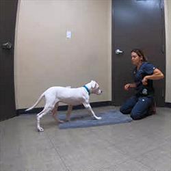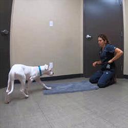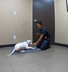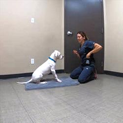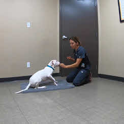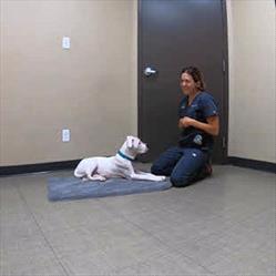 If you begin with a mat, place it on the ground or onto the elevated surface. Mark and treat the dog for any movement toward the mat. Treats can be placed onto the mat to encourage the dog to go onto the mat quickly.